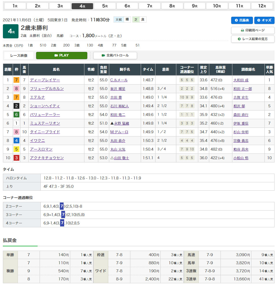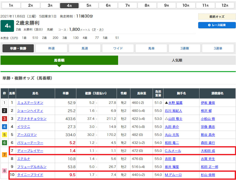 【11/5㈯ 東京4R 2歳未勝利】