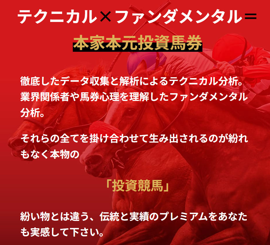 テクニカル×ファンダメンタル=本家本元投資馬券とあります。