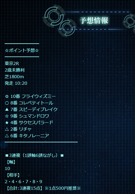 あれからコツコツとポイントを貯めていたのですがお今回ポイント情報を購入してみたので実際の買い目を公開します。