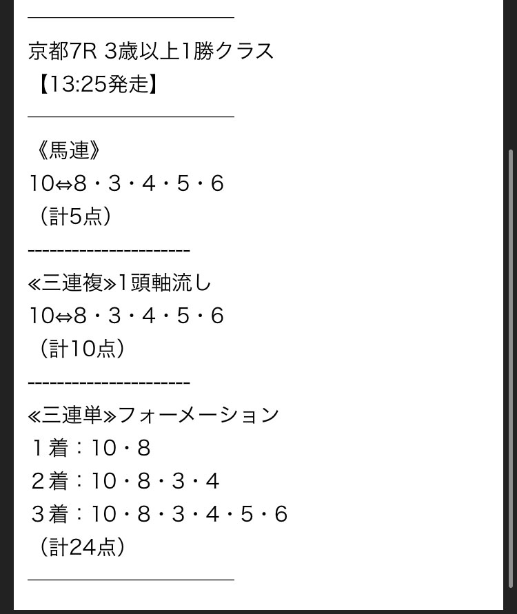 11/4(土) 京都7Rの馬連・3連複・3連単予想