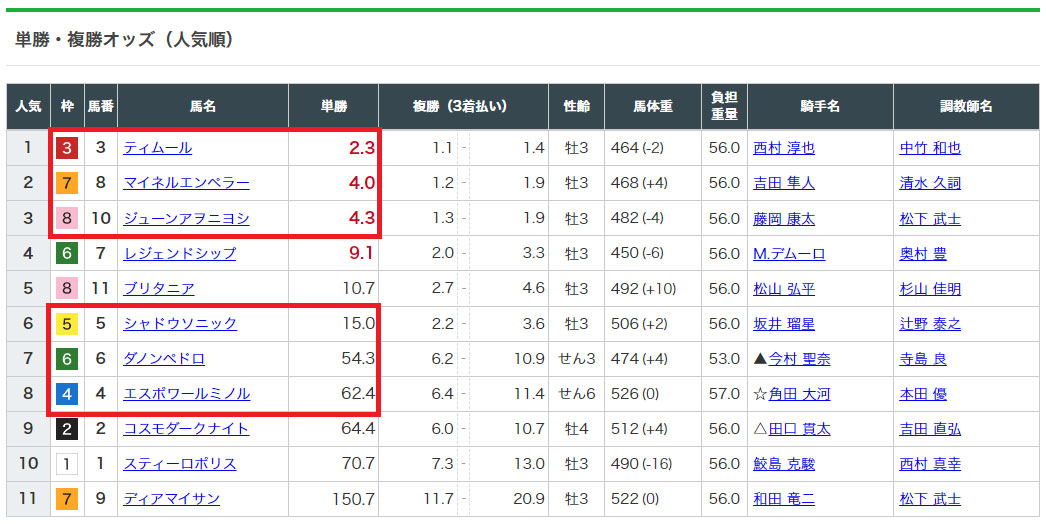 しかし5.6番人気馬が絡めば高配当も狙えそうです。