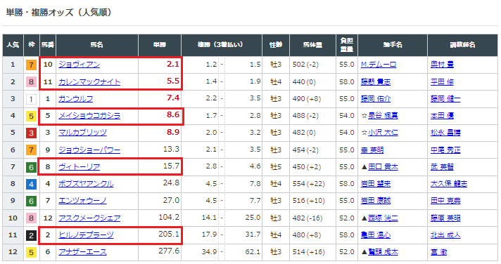 選んでいる馬の人気を見てみると上位人気馬と穴馬数頭選ばれていました。