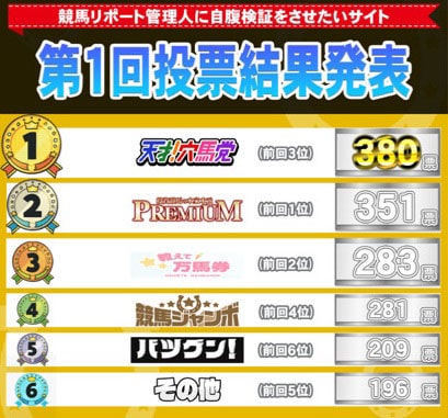 この度、競馬リポート公式LINE友だち追加者限定に実施した「第1回自腹検証サイト投票」ですが…