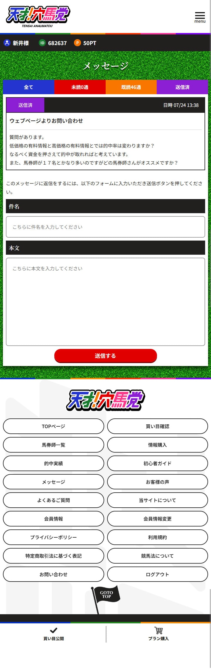 今回は情報料金の高いプランに参加しましたが、このサポート対応力を見ると状況に応じた馬券師を紹介してくれる。