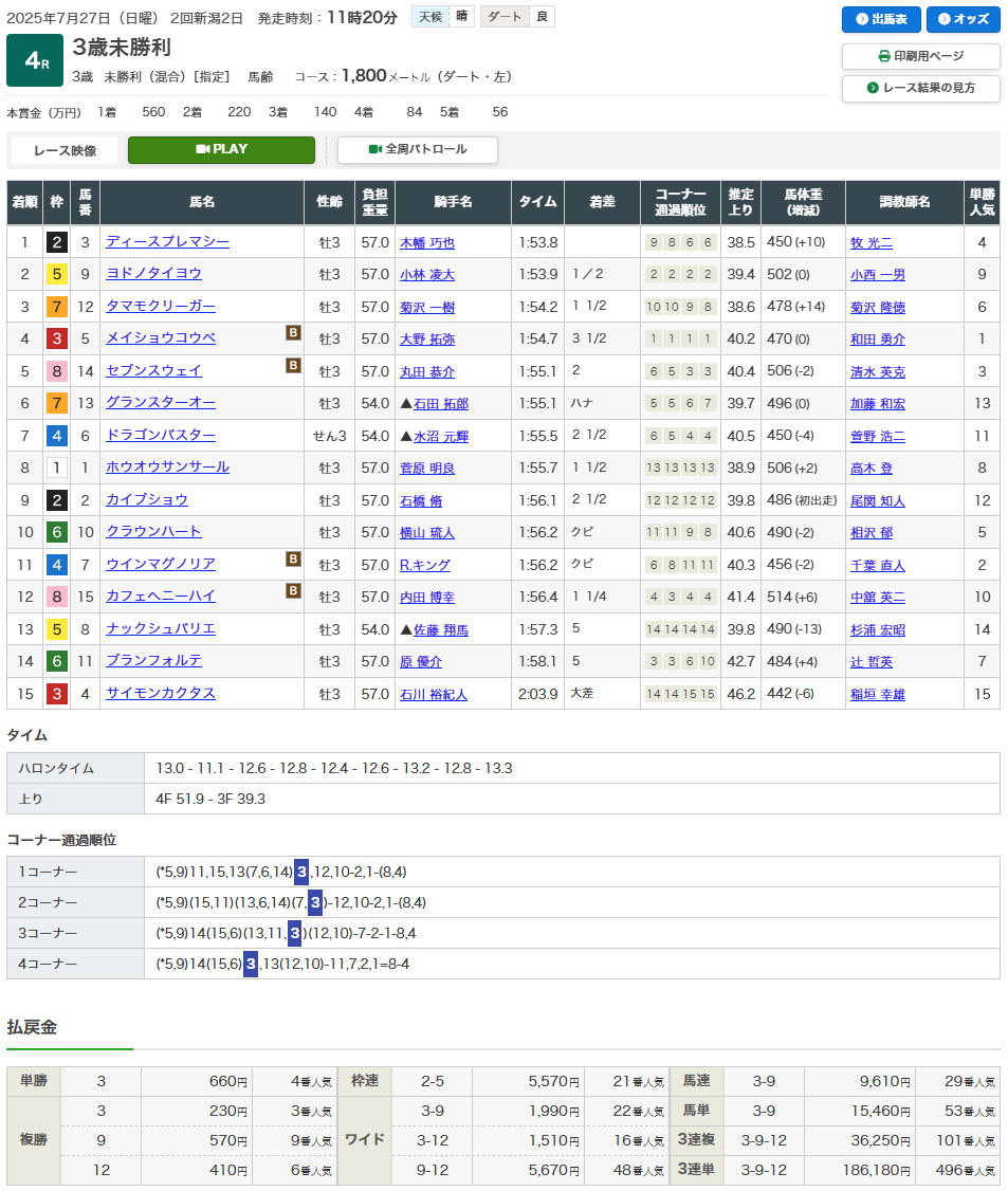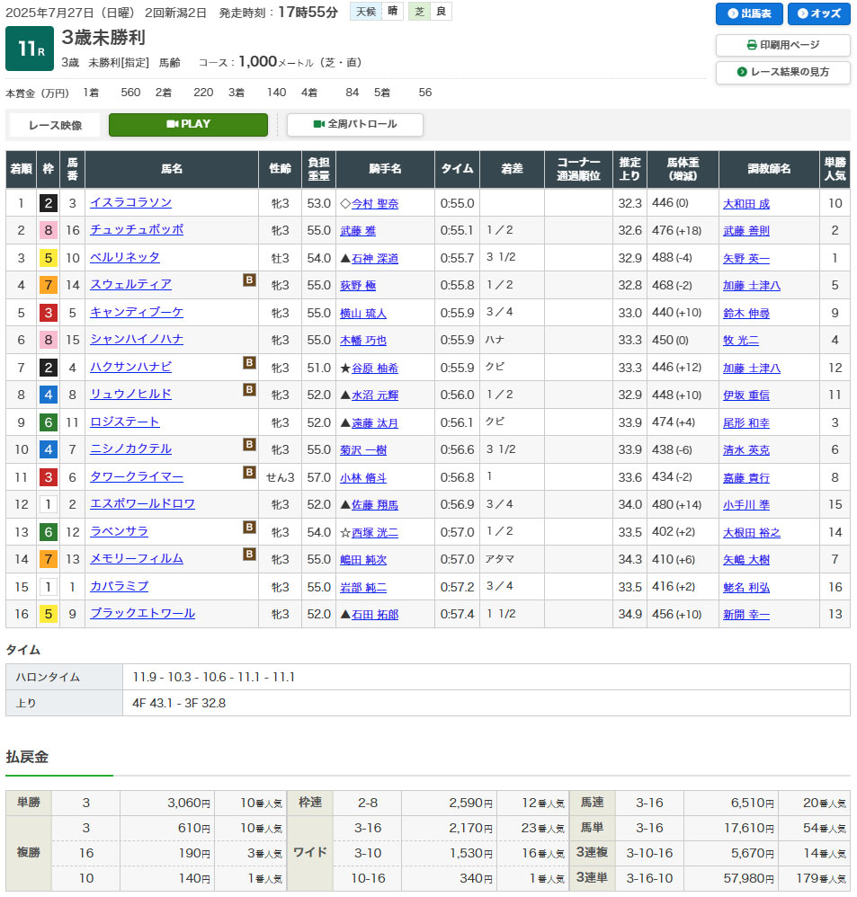 この日に公開されたのは新潟4Rと新潟11Rです。
