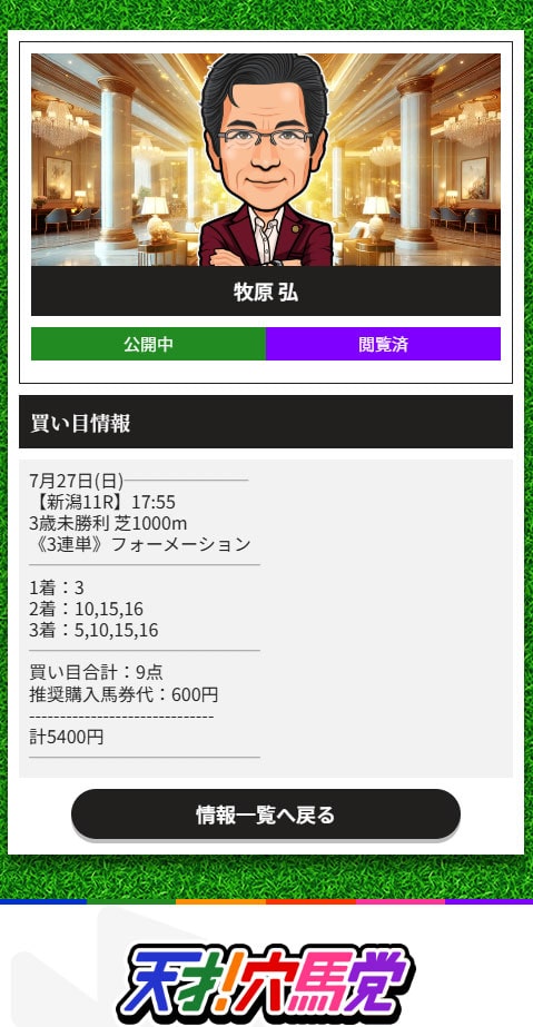 「2日間に渡り検証をしましたが、「天才!穴馬党」は会員の皆さまにぜひともお勧めしたいサイトだということが分かりました!