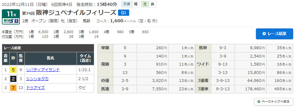 そして、阪神ジュベナイルフィリーズの結果はコチラ↓