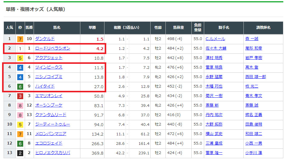 馬単は当てることが出来たので、次はワイドの予想がどうかも見たいと思います。