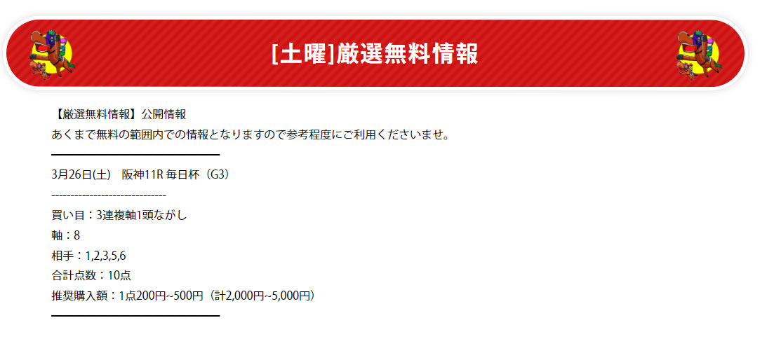 今回検証したのは馬ズバッ!という予想サイトの「無料情報」です。