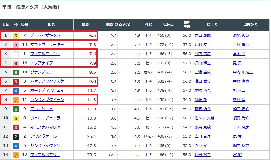 それにしても1番人気馬でも単勝オッズが6.5倍は混戦すぎますね。