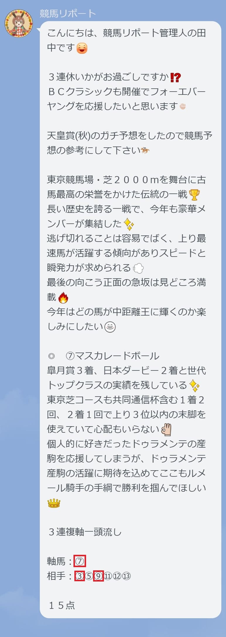 秋の重賞戦線好調を維持で先週の注目重賞G1天皇賞・秋もガチ予想で2000人を超える競馬ファンに的中を届ける事ができました!!