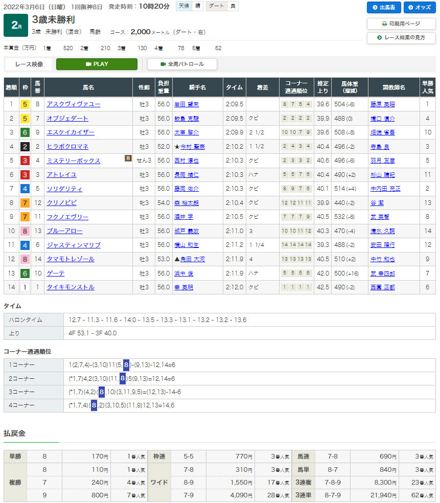 【検証レース④:3/6 阪神2R 3歳未勝利】
