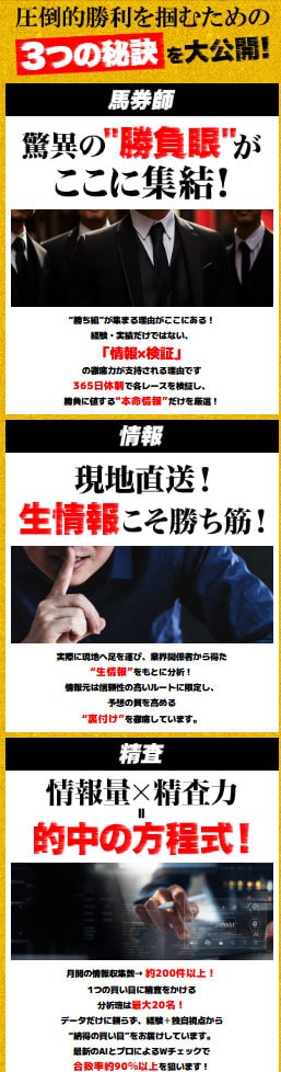 バツグンには圧倒的勝利を掴むための「3つの秘訣」があるようです。