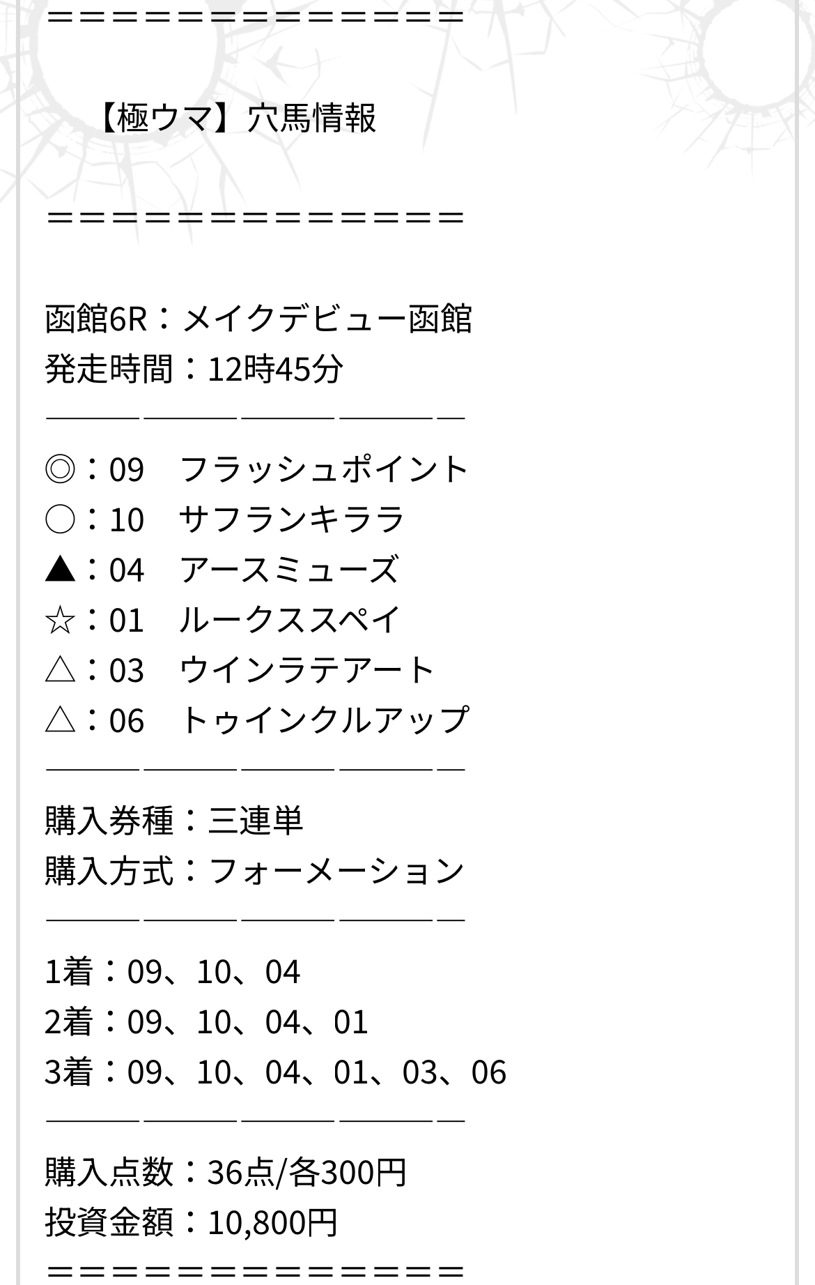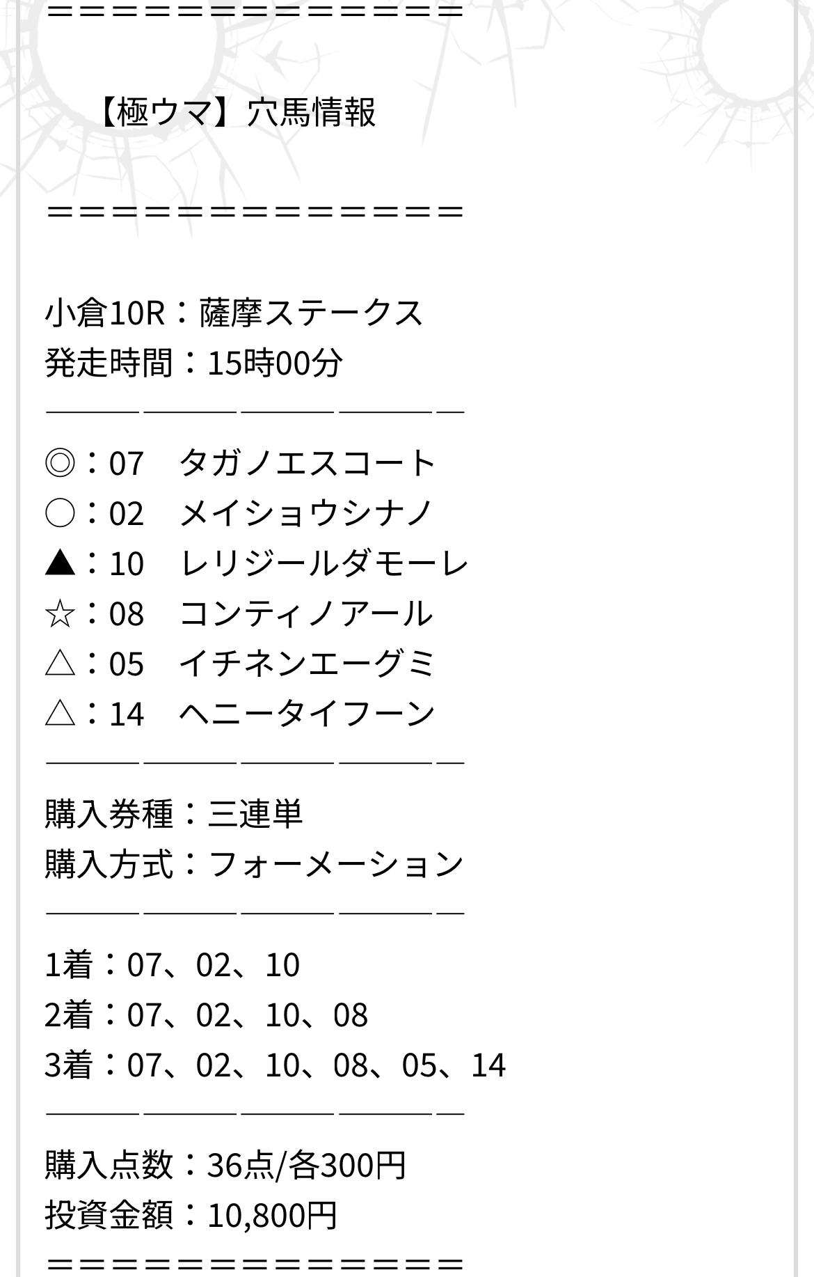 どうやって穴馬を選んでいるのか弟子入りしたいレベルです(笑)