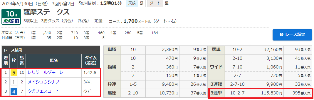 私は北九州記念を派手に外してしまったので4万円の美味しい配当が的中したのが羨ましいです…
