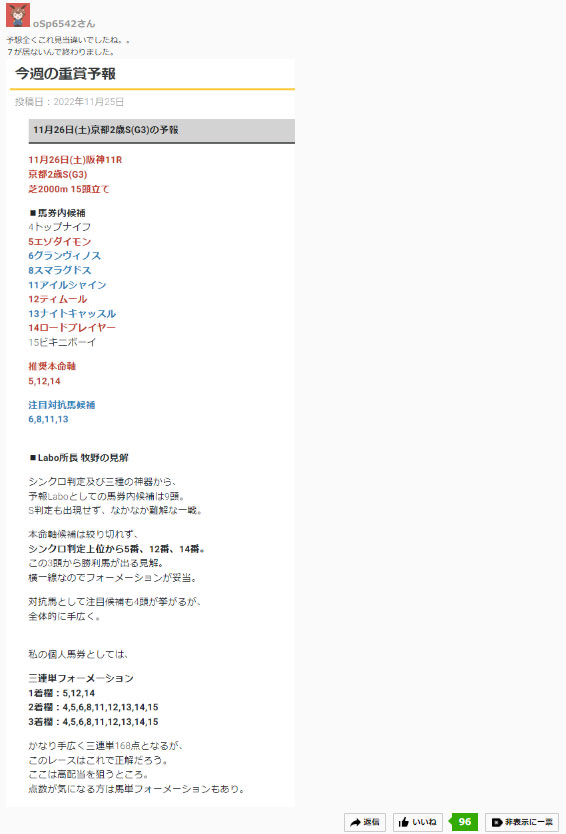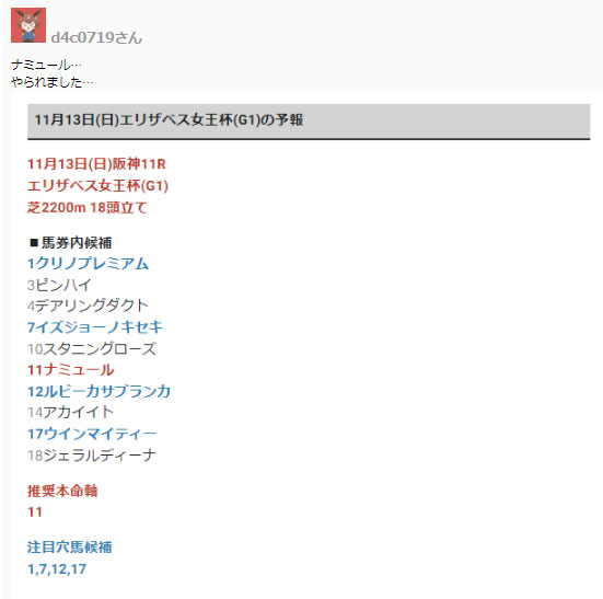 さらにクチコミを見てみるとエリザベス女王杯も不的中だったようですね…