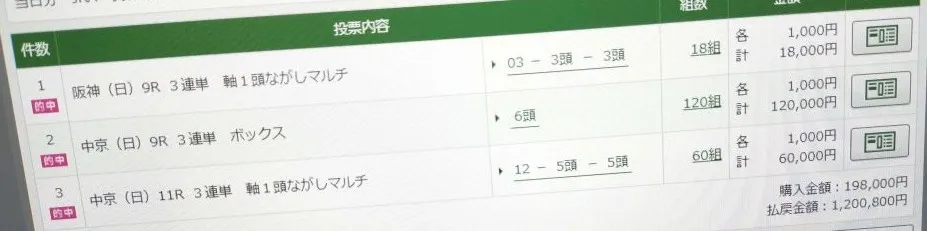 昨日は資金に余裕がなく1点200円でしか馬券を買えなかったんですけど