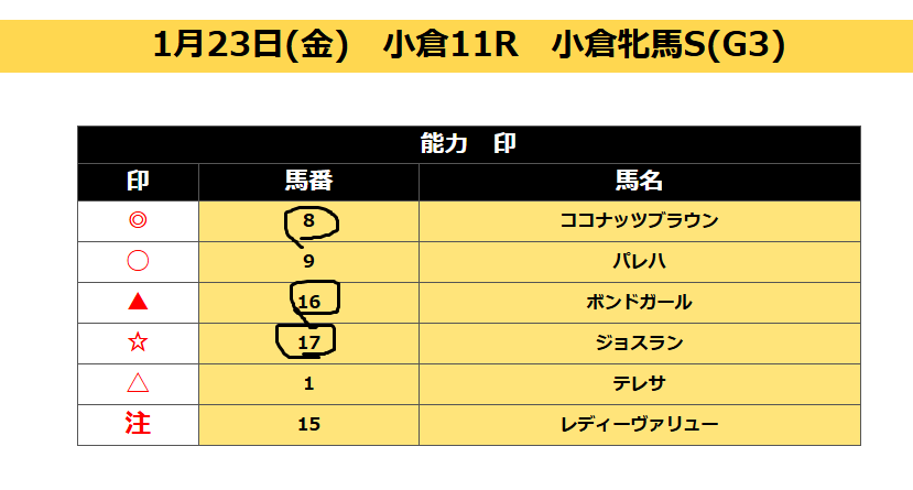 ⑧軸で小倉牝馬ステークス3連単万馬券36,960円取れました。