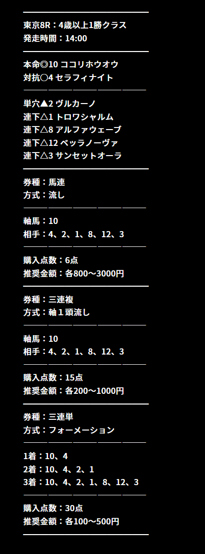 競馬リポートさんに紹介してもらった馬喰商會を使用て一撃150万円以上の払戻を頂けました。