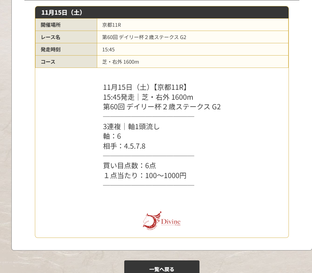 唯一の的中はディバインさんを使った予想に乗ったレースで万馬券