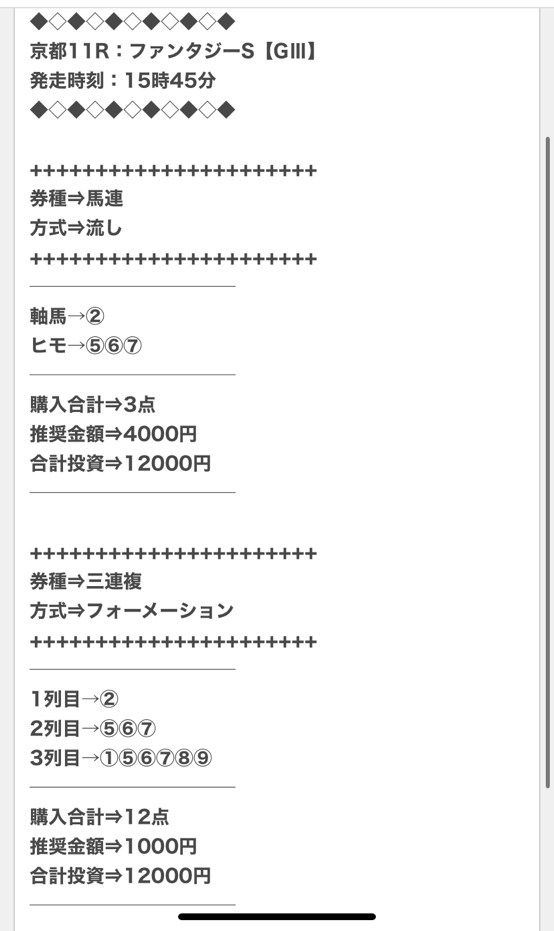1着2着3着フォーメーション通りに3連単買っていても的中だった買い目です、1点100円でも買っておけば万馬券的中でした、凄い予想です!