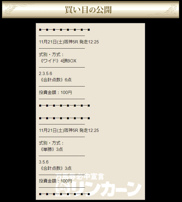 ワイドと単勝の的中を無料で貰えました! この的中率なら有料情報に十分参加できる参考材料になりますね、有料は40万2本、60万、70万の的中があったし、絶対的信頼がおけると確信しています!
