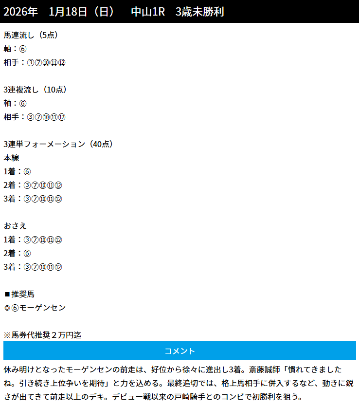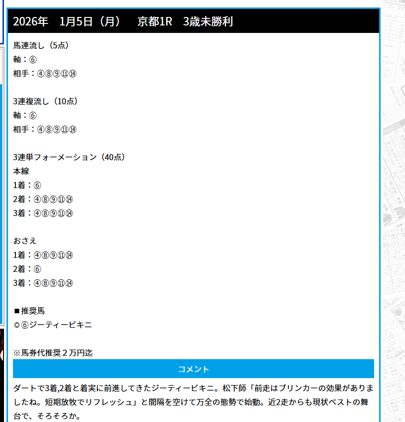 まさにトレセン情報っていう予想ですね、朝一のレースから完全無料予想で3連単万馬券的中で11万獲得は軍資金集めの強みになります!
