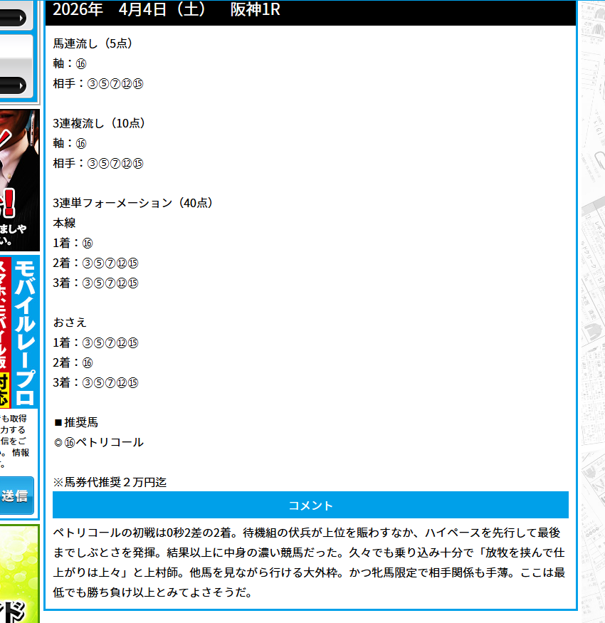 4月一発目の無料情報で万馬券当たって12万900円朝一から的中! まじで大阪杯の軍資金サンキューです! 明日の朝一?無料情報も期待しまくりです!